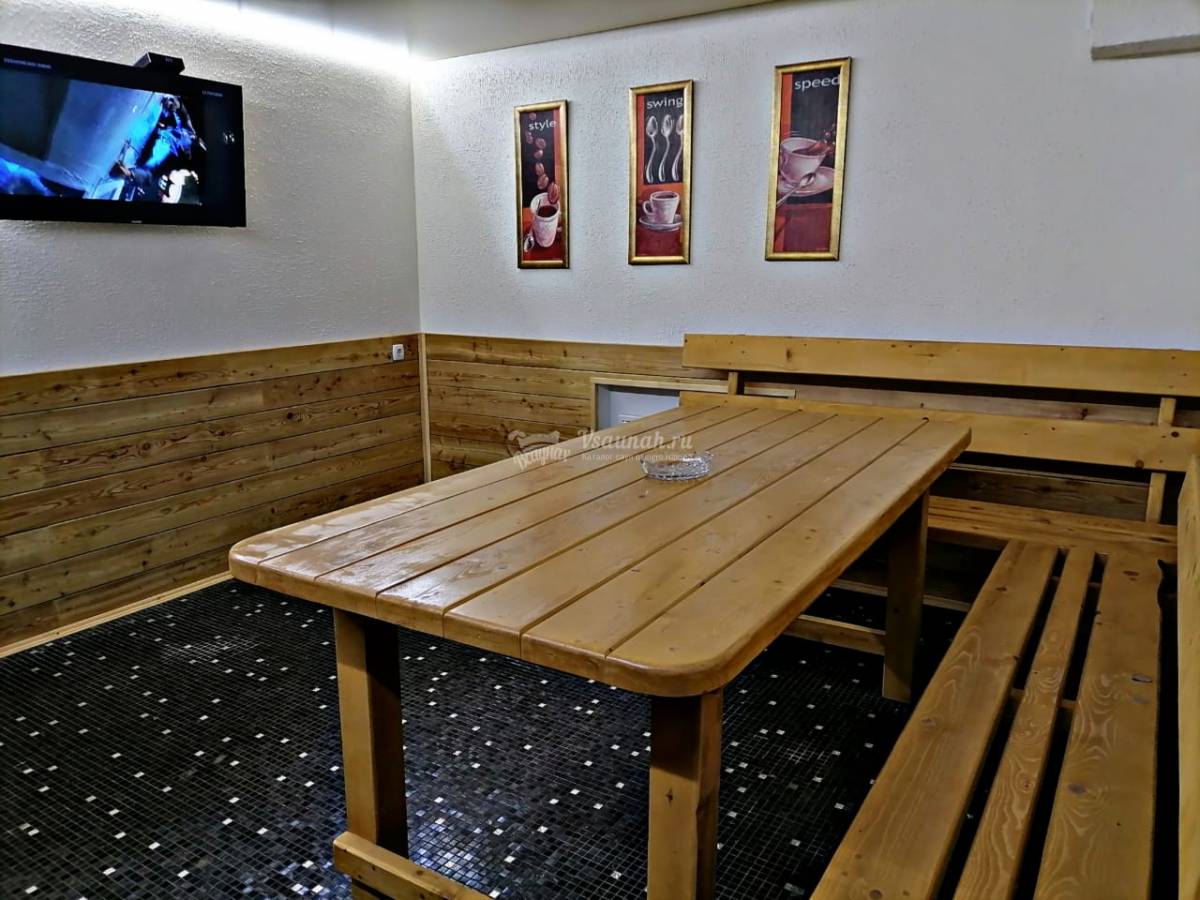 - некоторый выбор сопутсвующих товаров (напитки и закуски, веники, тапки, полотенца, шапки и т.д.).